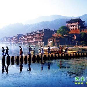 上 午: 游覽鳳凰古城九景(門票148元含):鳳凰古城風(fēng)景秀麗,歷史悠久,名勝古跡甚多。城內(nèi),古代城樓、明清古院風(fēng)采依然,古老樸實(shí)的沱江靜靜地流淌,在這里,你可以游覽到全國政協(xié)委員、鄉(xiāng)土文學(xué)之父沈從文的故居,民國總理熊希齡的故居、鳳凰四大城門之一的東門城樓、古城博物館、楊家祠堂、崇德堂、雅宏雅致,古色古香的虹橋藝術(shù)樓、被評(píng)價(jià)為“殿宇樓臺(tái)薈萃的建筑藝術(shù)大觀”的萬壽宮、聽著苗家姑娘別具特色的山歌,泛舟于清澈碧綠的沱江之中,沿途參觀兩岸已有百年歷史的土家吊腳樓。