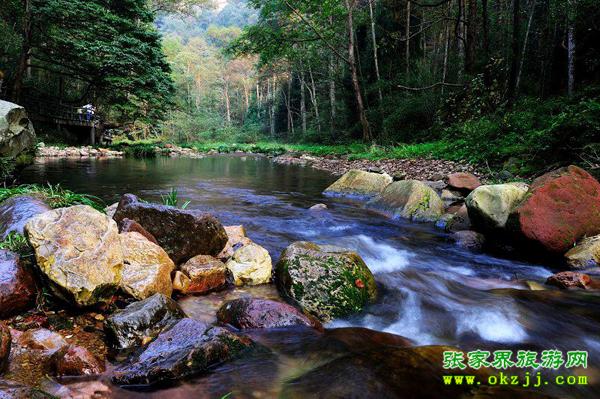 張家界是我國(guó)第一個(gè)國(guó)家森林公園,境內(nèi)奇山異水、奇花異木、奇禽異獸,奇絕天下。登黃石寨而小武陵,其山、石、云、霧、松,號(hào)稱(chēng)“六奇”。金鞭溪?jiǎng)t峽長(zhǎng)谷幽,溪水清澈。