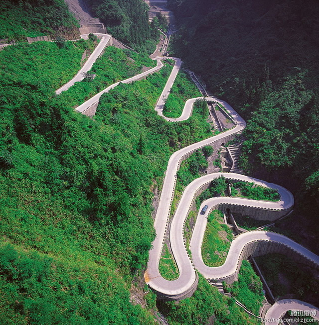 通天大道:被稱為通天大道的盤(pán)山公路共計(jì)99彎,似玉帶環(huán)繞,彎彎緊連,層層疊起,依山籍壁,直沖云霄,“天下第一公路奇觀”橫空出世,從索道上觀看公路,有如蜘蛛網(wǎng)一般密集的公路,垂直高差達(dá)千米左右。