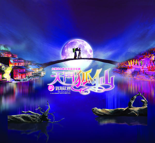 《天門(mén)狐仙——新劉??抽浴纺壳笆鞘澜绲谝慌_(tái)有完整故事情節(jié)的山水實(shí)景音樂(lè)歌舞劇。舞臺(tái)選址在天門(mén)山風(fēng)景區(qū)山門(mén)口內(nèi)至天門(mén)山頂?shù)恼麠l峽谷,總投資達(dá)到1.2億元,演員隊(duì)伍達(dá)530多人。主舞臺(tái)以10000平米的玻璃鋼打造,是目前世界最大的全景玻璃鋼舞臺(tái)。音樂(lè)主創(chuàng):譚盾。