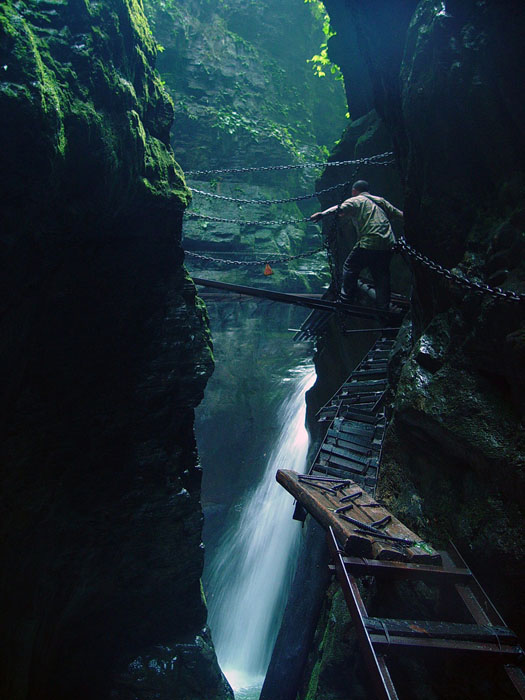坐龍峽擁有中國第一條特種游道。所有游道均建于峽谷深處,依山取勢,既經(jīng)細(xì)心雕琢聽卻又渾然天成。粗樸的板栗木棧道,可以讓你零距離的親近那一潭碧幽、聽聞山泉叮咚;精巧的跳墩,可以讓你媳戲流泉、觸感溪瀑;原質(zhì)的石坎道,讓你不得不調(diào)動全部的身心能量悉心攀援、感悟峽谷;有驚無險的鐵梯,讓你伴著腳下轟鳴的溪水,在驚怵中體味一份快慰。 出口出的土家山寨,保留了古樸獨(dú)特的生活習(xí)俗。一塊臘肉就一口醇香的“苞谷燒”會讓你洗去所有的疲憊,在輕松中憨厚的主人向你講述過去強(qiáng)人出沒的故事......