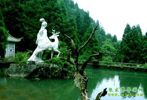 “南岳四絕”之方廣寺之深。位于南岳衡山蓮花峰中央花蕊之上。據《南岳志》載:寺始建于南朝梁天監(jiān)二年(公元五零三年)。南岳高僧之一的惠海來到這八座青峰圍繞的狹長山谷中,見此地與世隔絕,巖壑幽邃,就在這里結草為庵。據《一統(tǒng)志》載:一天,惠海正在庵中誦經,忽然有五位身材偉岸的壯士求見。來人面容各不相同,分青、黃、紫、白、黑五色,都身穿白袍。五人請求惠海和尚允許他們聽經學佛?;莺査麄兪呛畏饺耸希麄兓卮鹫f是南岳山中的五位龍神,如果允許他們聽經,他們愿意讓出一塊平地,獻給惠海建造寺院。惠海答應了他們的要求。當天晚上,山谷中烏去驟起,霎時雷聲隆隆,大雨滂沱,傳來陣陣“嘩啦啦”的響聲。第二天清早,惠海起來一看,只見山下出現一塊寬敞的平地?;莺5教幓壞季瑁谶@塊平地上建造了一座規(guī)模宏大的寺院,寺名方廣,寓佛法“十方廣布”之意。這就是《南岳志》上記述所謂“五龍聽經,平沙獻地”的故事。
