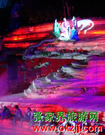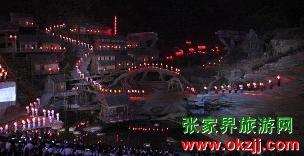 在天門山景區(qū)全球最大的玻璃鋼舞臺(tái)上,在開幕式上試演的世界第一臺(tái)大型山水實(shí)景音樂劇《天門狐仙》,拉開了’2009中國(guó)湖南國(guó)際旅游節(jié)張家界民族文化周的序幕。