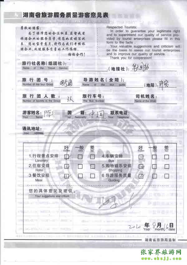 - 游客夏先生為表?yè)P(yáng)導(dǎo)游李姣姣寫來表?yè)P(yáng)信致我張家界... [14811]