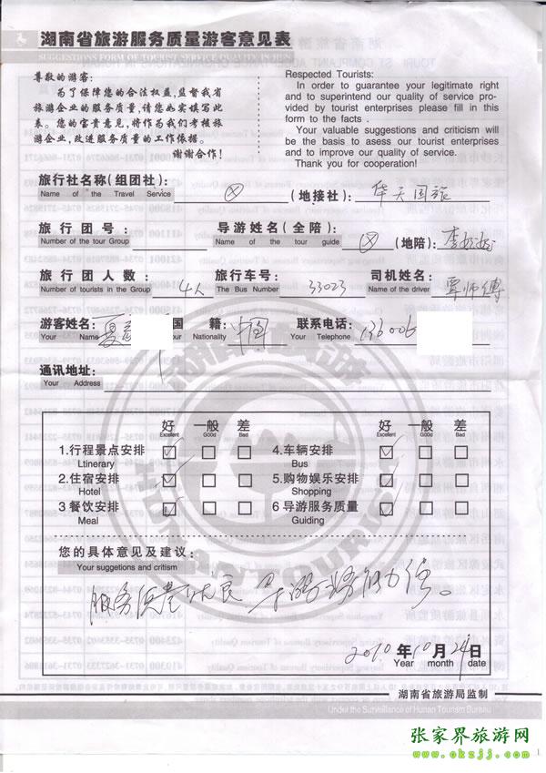 2010年10月24日 夏先生評價服務(wù)質(zhì)量優(yōu)良,導(dǎo)游業(yè)務(wù)能力強