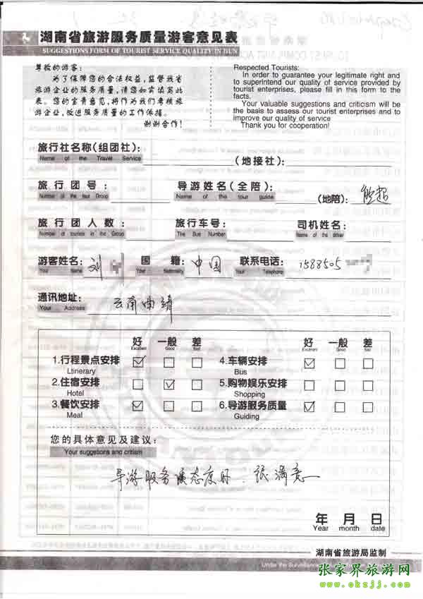 - 游客夏先生為表揚導游李姣姣寫來表揚信致我張家界... [14811]