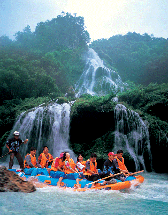 到了大門口,彭導幫我們?nèi)ベI了門票,248元/人,共花去496元。彭導先前給我們預算是,按最經(jīng)濟的帳目來算的,470元/人(包括進山大門票,但不包括索道、天梯、酒水等),他說出門在外,能節(jié)約點就節(jié)約點。當然他也知道我們可能會超出這個標準,如果有必要,到時可以再自己花費。買了門票后,我給了他500塊,算是這幾天的費用,他說,不是說好是每人470的嗎,你應該是給我444塊。我說,上次謝謝您的關(guān)心,這次不能讓你太吃虧了。彭導說,那今天晚上我叫店家給你們加個菜,呵呵呵。 下午,我們玩了森林公園中的黃石寨和金鞭溪。看了天書寶匣、點將臺、南天柱、摘星臺、六奇閣,五指峰、金鞭溪、金鞭巖、文星巖、紫草潭、千里相會等,彭導果然是彭導,有著二十年的導游經(jīng)驗的他就是不同凡響啊,個個景點都是如數(shù)家珍,說得是頭頭是道。(據(jù)網(wǎng)上說,有些導游是只帶路不講解,讓人只是看看表面,而無法去領(lǐng)略張家界那些精美絕倫的凄美傳說。我個人認為張家界的傳說也是應該值得每一個游人去了解,去領(lǐng)略的,如果你來張家界沒有聽到這些傳說的話,那一是你的導游的水平問題,二是你的一個很大的遺憾,你來張家界的經(jīng)歷是不完美的),什么龍蝦花的來歷,金鞭巖的前身,秦始皇和孟姜女與張家界的關(guān)系。晚上乘百龍電梯上袁家界(張家界的核心)一家旅館住宿。晚餐時,一葷一素一湯。我們吃著吃著,老板笑咪咪的搬上一鍋火鍋,當?shù)氐耐岭u火鍋。我們很詫異,我說,我們沒有點這個菜?。±习?,你是不是弄錯了?老板說,這是你們彭導叫我特地做的。我突然明白了,一定是彭導是為我多給的那50多塊錢了。由于長途奔波,加上下午又走了很多路,晚上洗了一個澡就睡下了。山里的氣溫很低,在這全國都如火爐時,張家界的晚上卻要蓋很厚的被子,真是一塊寶地啊。 第二天早上,我們參觀了袁家界的風景,其中最有名的當然數(shù)天下第一橋,這是由兩座巖石山的山頂自然生長在一起,非人所能為也。天下第一橋的稱號當之無愧啊。當然在袁家界,后花園也是不能不看的。張家界號稱“峰三千,水八百”,在這里你就能明顯的感覺到這句話的前半句是那么的實在??赐陱埣医绲暮诵脑医纾覀兂塑嚨搅?a class="insidelink" href="http://www.njnbrz.cn/scenic/zjjjq/1529295057.html" title="天子山">天子山(張家界景區(qū)內(nèi)的最高的地方)。玩了賀龍公園、御筆峰、仙女散花、西海、石船出海、仙人橋、天子廟、十里畫廊、一步難行。不巧的是,那天山上下了一點陣雨,雨后一條彩虹掛在天上,更重要的是山上起了一點霧,使整座山都籠罩在霧中,若隱若現(xiàn),看上去就象是在云海中,好象老天特地配合我們似的,難得一見的西海等正好被我們趕上了。彭導告訴我們,這樣的機會是很難得的,可能是張家界為了感謝我的再次到來,給了我一個特別的禮物吧。我大笑。晚上趕到昨天住的地方去住宿。不提。 第三天我們玩了烏龍寨、三道鬼門關(guān)、天波府、一步登天、空中走廊等。主要是在楊家界的景區(qū)范圍內(nèi)。本來是第三天下午要去鳳凰的,但是考慮到我和女友小嵐好容易來張家界一次,盡量將張家界的能玩的地方去玩一下。我也曾聽說張家界不僅峰三千,水八百,同時天然溶洞也是非常不錯的,據(jù)說其中一個溶洞為一根鐘乳石投保了1個還是2個億,(不怎么記得了,呵呵。)而且在張家界的宣傳資料上還看到了有漂流,打水仗等非常刺激的項目。我于是問一下彭導,能否幫我們聯(lián)系一下,彭導很爽快的答應了,他幫我們聯(lián)系了九天洞和茅巖河的公司。在彭導的上下打通下,本來是315元/人的行價,硬是給用278元/人的價格給拿下了。當搞定這些時,已經(jīng)外面是天黑一片了(彭導家就在楊家界)彭導說他想回家看看,明天我們會和一群人去看洞和漂流,他就不陪我們?nèi)チ?,明天下午他會在張家界市區(qū)去接我們,到時會有車送我們?nèi)ナ袃?nèi)。然后他會送我們上去鳳凰有車,并幫我們?nèi)ヂ?lián)系鳳凰的朋友來招待我們。 第四天,清晨我們便踏上了汽車去看洞漂流。號稱亞洲第一大洞的九天洞果然是名不虛傳,我們把它現(xiàn)在開發(fā)的部分粗略的走了一下,就花了我們近月4個小時,洞中鐘乳石遍地,在五彩斑闌的燈光下,顯得晶瑩剔透,閃閃發(fā)光,讓人感覺到是到了水晶宮一般,地下還有陰河,遠處通知海(據(jù)說)。對了,洞中溫度很低,常年在10多度。讓人在其中感覺到一陣陣寒意。故想進去的朋友記得多穿點衣服,以免著涼,切記。我們當時就是吃了很大的虧,從洞中出來時,小嵐就在點喀漱。下午來到茅巖河漂流。上船前看到有人賣水瓢,心中不免奇怪。雖說,張家界金鞭溪的水可以喝,但也不是每一條河的水都能喝?。坑谑巧锨叭?,一打聽才知道,這瓢不是用來舀水喝的,而是用來打水仗的。本來因為小嵐有點小感冒,我們打算保持中立,但一看到各位船友們個個磨拳擦掌,人手一把瓢或者水槍(這是當?shù)厝擞弥褡幼龅囊环N土水槍),還且對我們是虎視眈眈,我想我參加是不成了。于是我們也花了幾塊錢買了兩把。船開動后,大家開始時還是比較興奮,不時用瓢來劃一下船,但是沒多久,大家就開始尋找新的開心方式了,于是大家都開始蠢蠢欲動了,大家也都不客氣,不管別人是否作好應戰(zhàn)準備,反正是先下手為強,其中一條船首